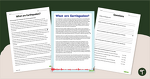 A comprehension activity with provided information sheet, questions and suggested answers.