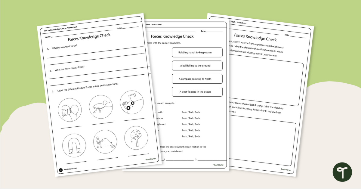 Have you just completed a science unit of work on contact and non-contact forces such as friction, gravity, magnetism and buoyancy? Are you looking for an assessment to assist you in assessing how well your students have grasped these concepts? Look no further than Teach Starter’s forces quiz!