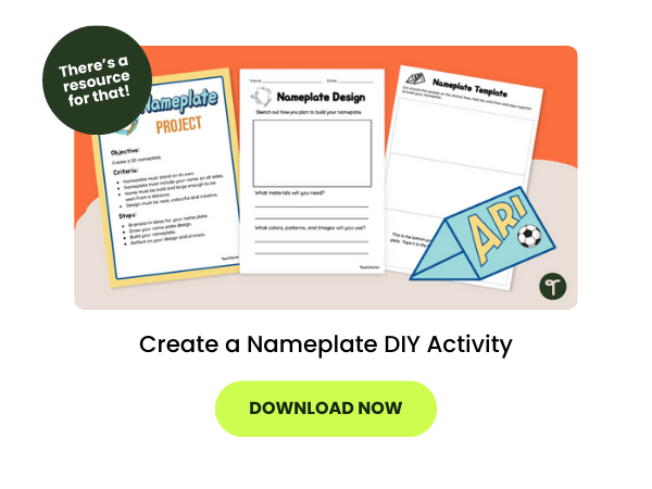 To create a customised set of desk name plates, click the ‘Open Customiser’ button on the desk name plate page you’d like to use. Enter your student names, choose your design options, and then click ‘Download PDF’. Your personalised desk name plates will be generated and saved to your computer’s Downloads folder.