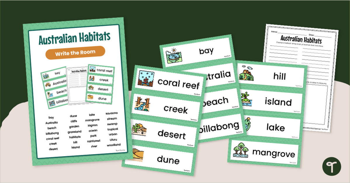 Help your early years students read, write, and talk about Australian habitats with a printable Australian Habitats Word Wall and Write the Room Activity Pack designed to support science-based writing in the classroom.