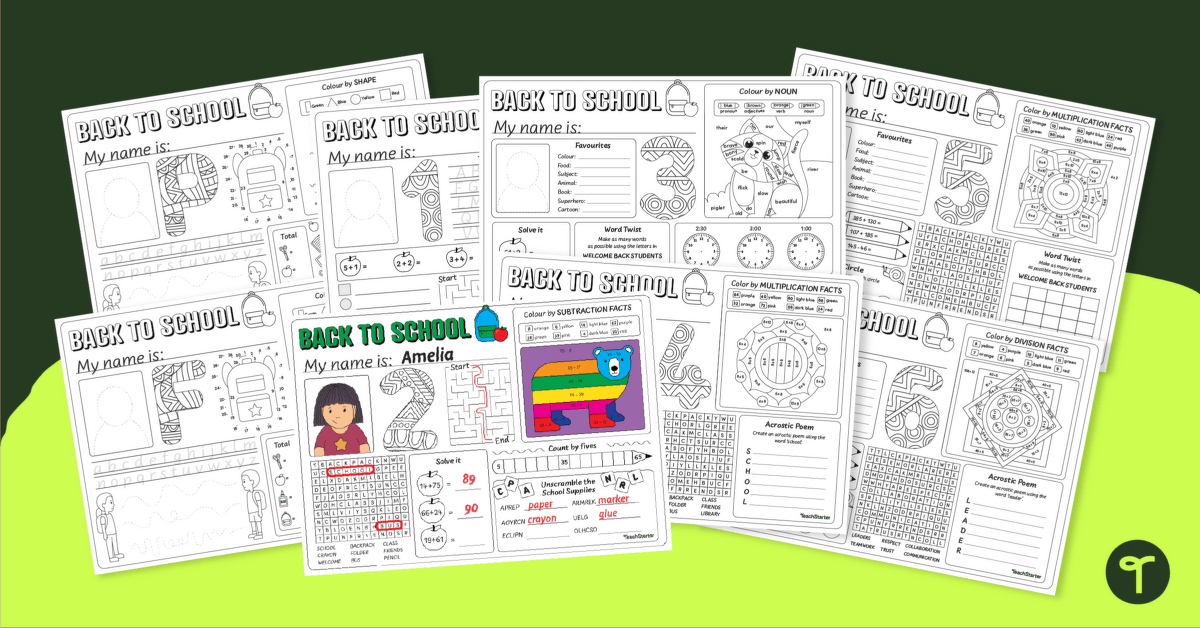 Through this activity, students will put their creativity, maths, reading and writing skills to the test to complete mazes, colour by number activities, back-to-school word searches, and more!