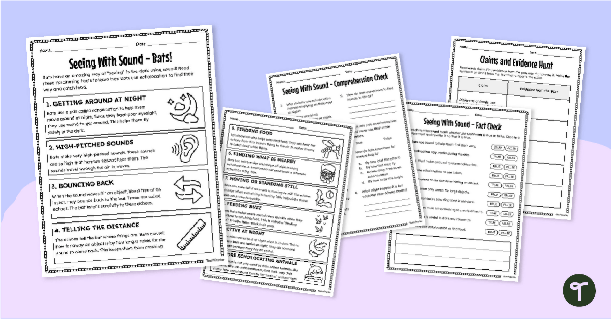 Give your little learners a fun and engaging way to learn about bats and how they use echolocation while practising essential reading comprehension skills! These All About Bats and Echolocation Worksheets combine science content with literacy practise, helping students explore important facts about bats and develop their ability to find evidence in a text.