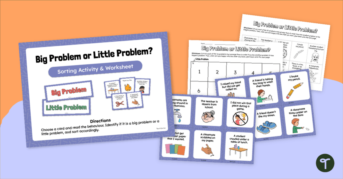 Use our Big Problem vs. Little Problem activity cards and worksheets to help your students learn to manage peer relationships in the classroom.