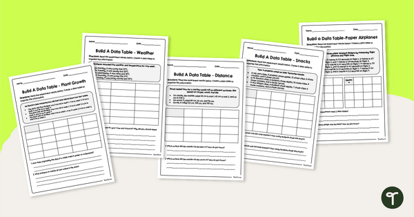 Help students develop scientific data-handling skills with this set of printable Construct a Data Table Worksheets.