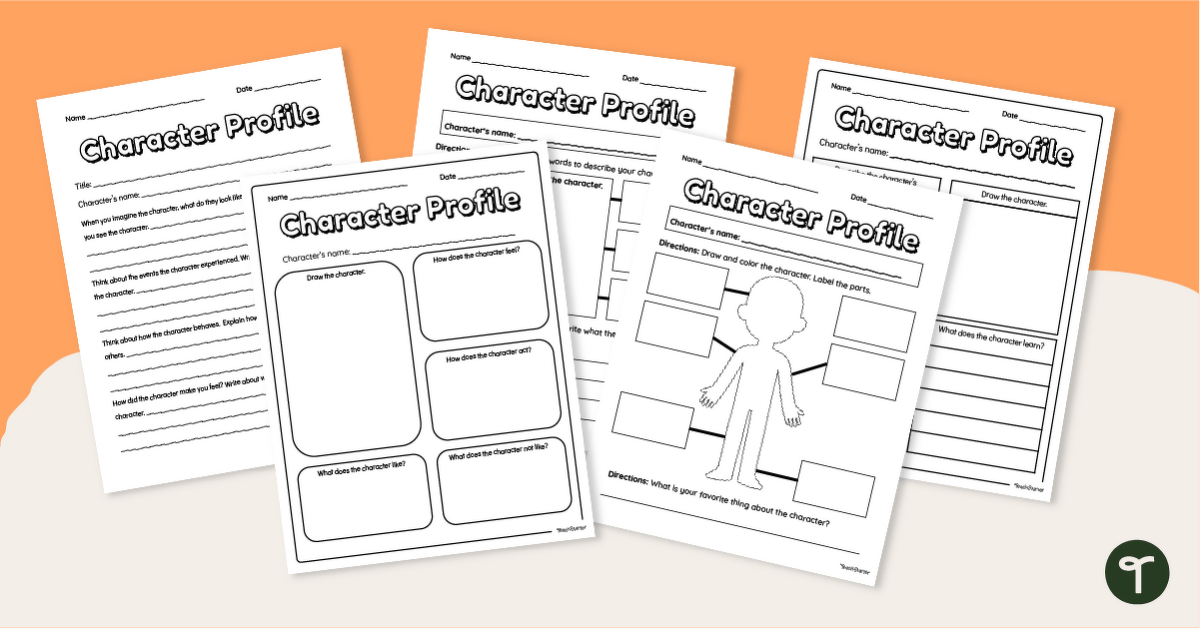 Explore the personality, appearance, feelings and actions of a character from a narrative with this printable character profile templates.