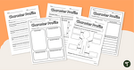 Each graphic organiser includes various boxes where students can write or draw about their chosen character’s appearance, personality, feelings and actions.
