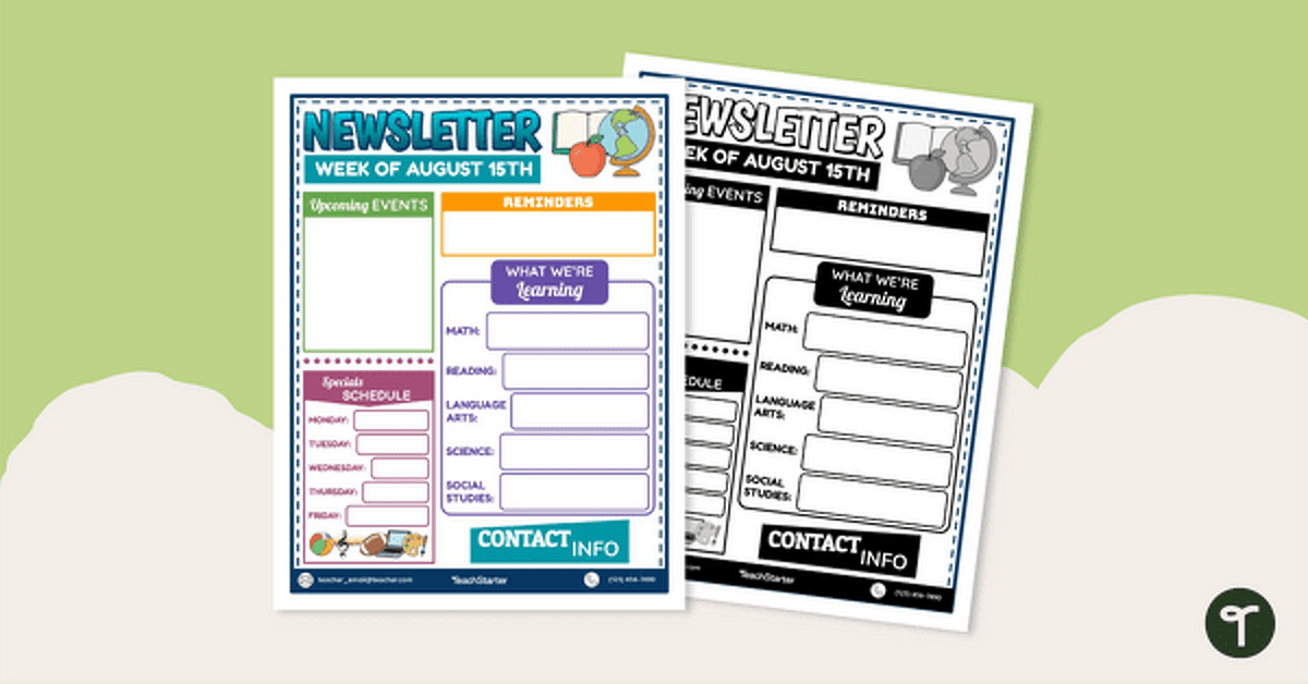 When downloading this resource, colour and black and white Google Slides and PowerPoint versions are available. After downloading, use the text boxes to input important information regarding your schedule, learning objectives, contact information, etc. To print or email your newsletter, simply download the file as a PDF. This can then be emailed to parents/guardians or sent home as a physical copy with your students.