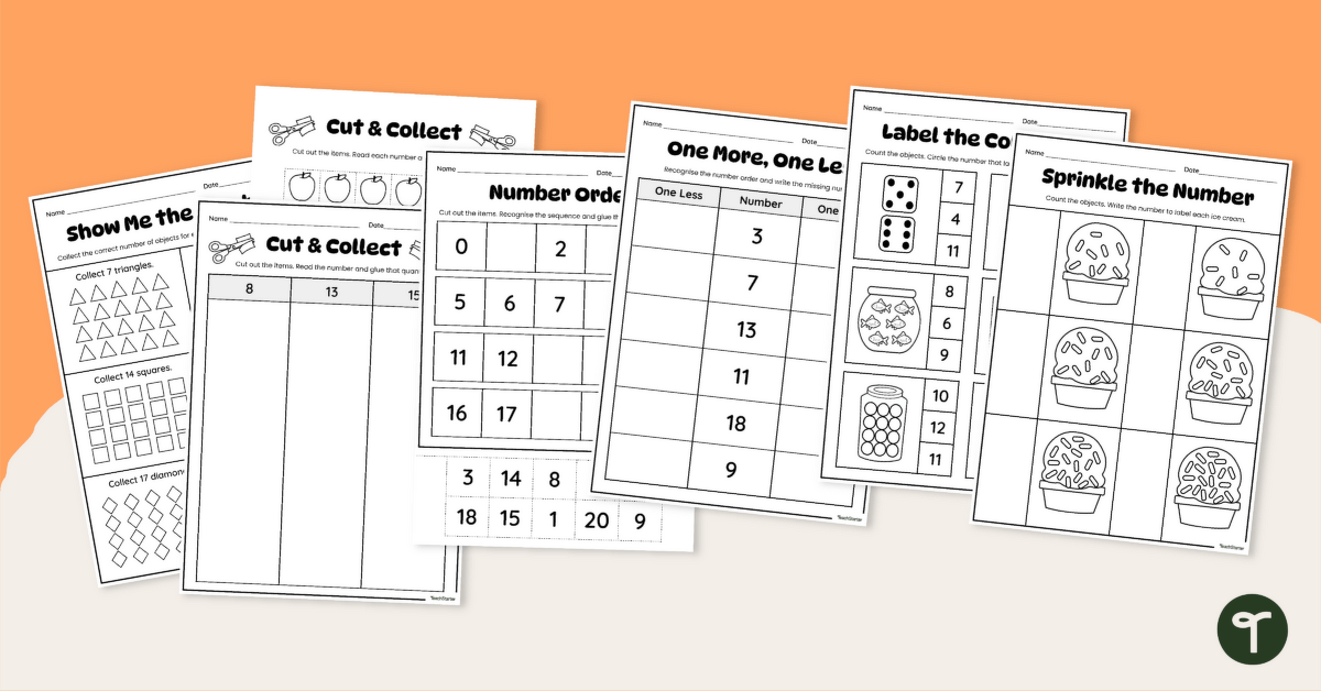 This pack opens the door to creative opportunities for exploring representing and ordering numbers 0–20. Try using the worksheets in fresh ways such as: