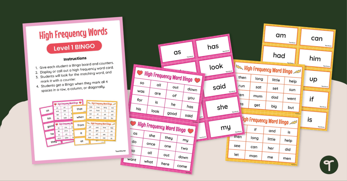Use this set of Prep (Level 1) High‑Frequency Words Bingo boards as an exciting, tactile way for students to practise decoding essential early-reading words.