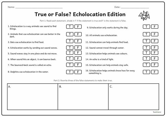 - True or False? Echolocation Worksheet – Test understanding of echolocation facts.