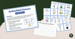 This matching card game has been designed by our team to help your students explore embedded clauses and their role in sentences. The resource includes three types of cards (sentence beginnings, embedded clauses and sentence endings) that students combine to create meaningful sentences. As students match the cards together, they learn how embedded clauses add detail and variety to writing.