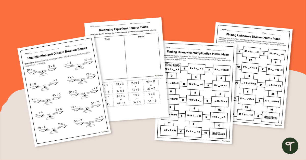 Understanding how equations stay balanced is a key step in extending number sense. This finding unknown numbers worksheet pack gives students repeated meaningful practice in working with missing values in both multiplication and division equations.