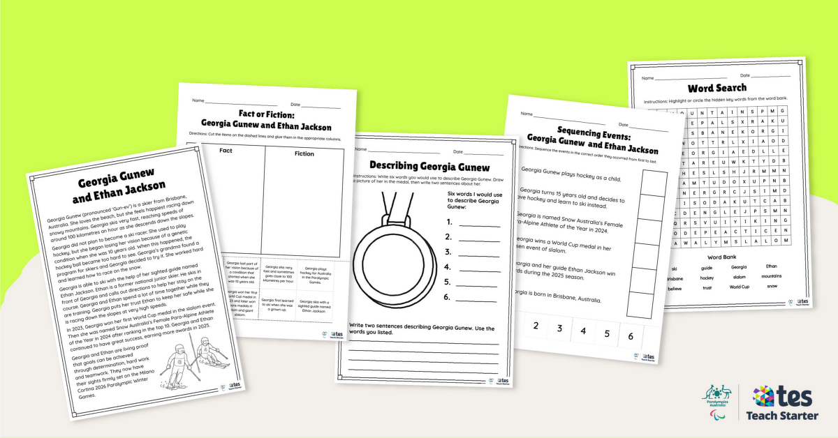 Explore the sporting journey of Australian Para athlete Georgia Gunew and her guide Ethan Jackson with this set of activity worksheets.