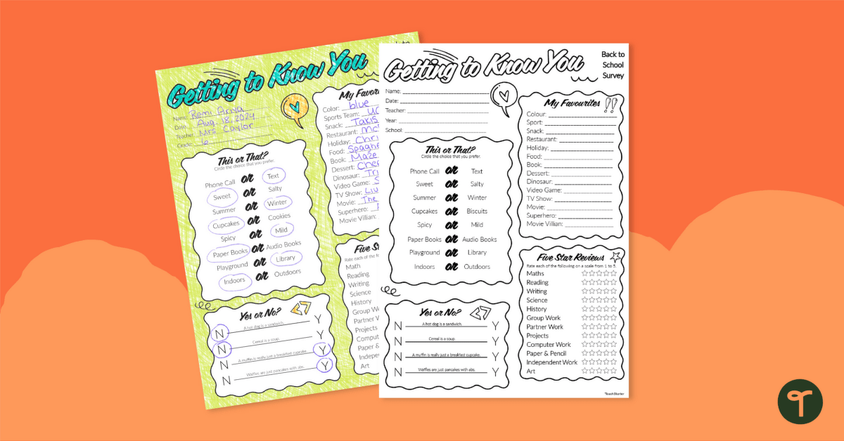 If you’re on the hunt for fun back-to-school activities for upper years and secondary, you’re in the right place! Teach Starter has created the perfect back-to-school student survey to help you learn more about your amazing students.
