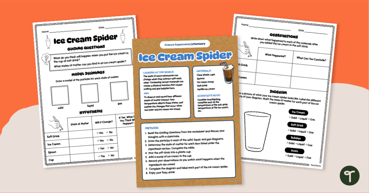 Turn an ordinary treat into an exciting matter lesson with this ice cream spider experiment! Perfect for exploring the phase changes seen in states of matter, this activity brings a tasty twist to hands-on learning. Students will observe solids, liquids, and gases in action as they make, observe, and analyse the phase changes occurring within an ice cream spider.