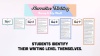 - List the ‘This piece of writing includes…’ statements vertically underneath the corresponding text.