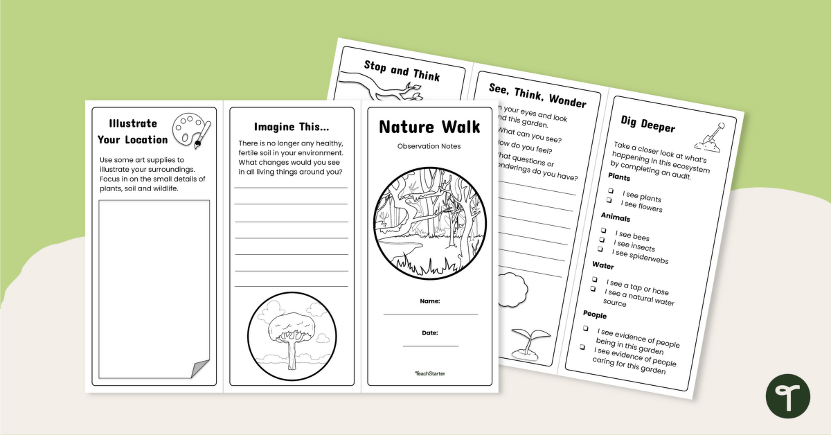 This nature walk brochure template has been designed by our expert teacher team to support you in teaching your students about the importance of soil to plants, animals and humans. Using the template, students will be able to draw their location, record their findings and reflect on how soil contributes to the ecosystem. Students will: