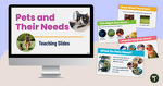 Teach your students about the needs of living things with an engaging interactive slide deck about pets and their needs.