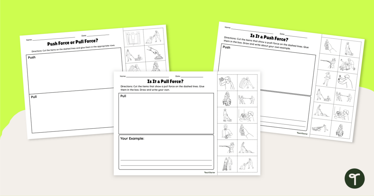 Are you looking for an age-appropriate resource to teach your students about push and pull forces that also encourages the use of fine motor skills such as cutting and gluing? Look no further than Teach Starter’s set of push and pull cut and paste worksheets!