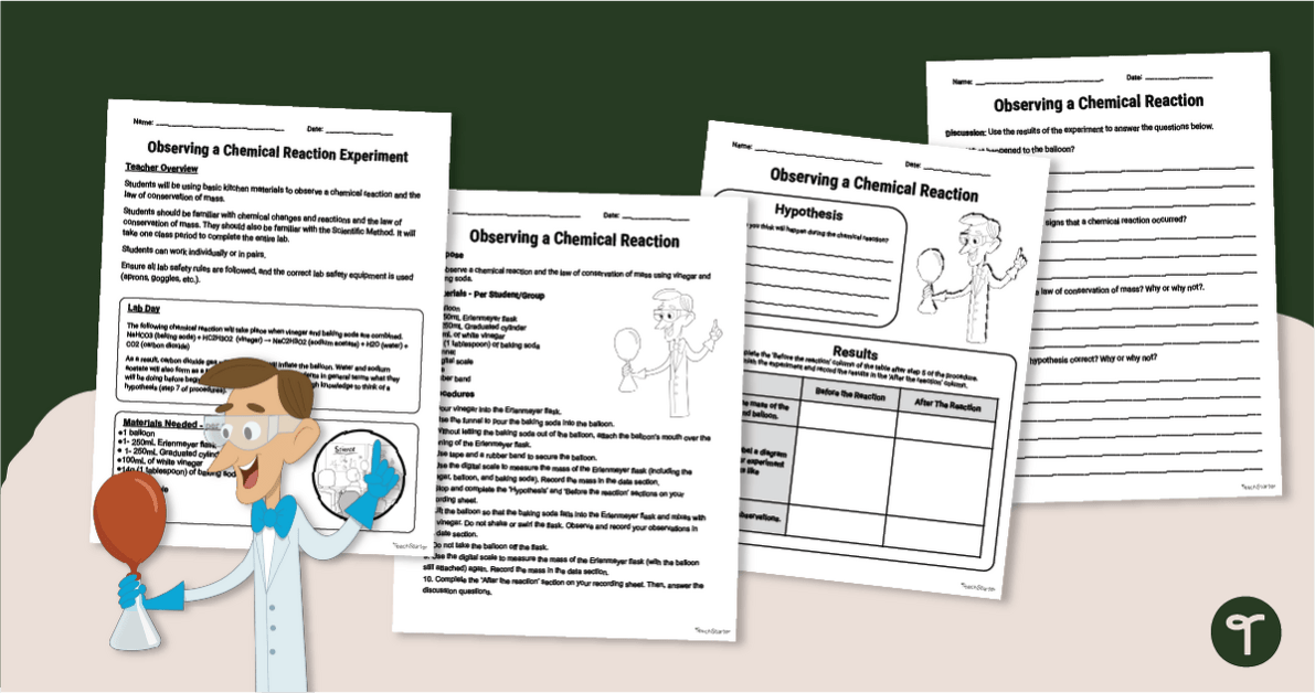 This chemical reaction experiment for kids comes with everything you need to guide students through the process of investigating chemical reactions: