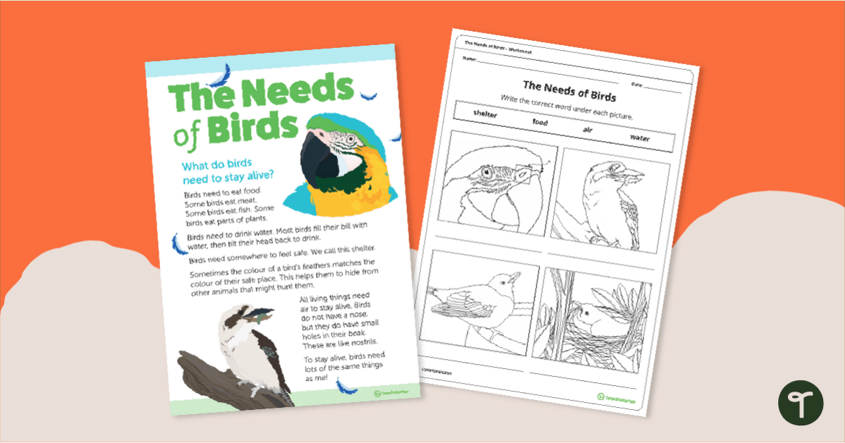 Explore the needs of birds and build reading comprehension skills with a printable Year 1 reading passage and comprehension activity.