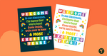 This year, let Teach Starter help you get ready for that first day back to school with our printable classroom posters and classroom decorating bundles. We’re excited to share this fun back-to-school classroom welcome sign that’s perfect to add to your bright new classroom!