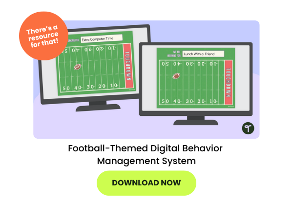 Transform your behavior management plan into a football-inspired game that keeps students motivated. Draw a football field on the board and use a marker or magnet to represent the ball. Each time the class does something worth celebrating—like showing kindness, staying focused, or completing a task together—the ball moves closer to the end zone. If behaviors slip, you can call a “penalty” and move the ball back. When the class scores a touchdown, they earn a fun reward such as extra recess, a short dance party, or time to chat with friends. This approach makes behavior management interactive and exciting, encourages teamwork, and keeps students motivated throughout the day.