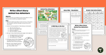 Inside the pack, students work through a guided sequence: exploring a model text, answering story comprehension questions, planning each stage of their own narrative, drafting their story, and editing using a student‑friendly checklist.