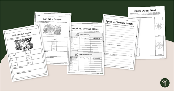 This resource download includes a variety of habitat change activity sheets for your students to use when exploring the effects of changing conditions on different habitats. We have included the following printables:
