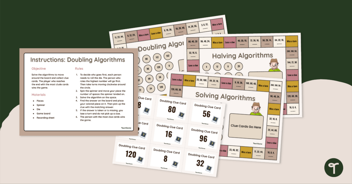This continuing patterns resource includes a set of three interactive board games focused on doubling patterns, halving patterns, and solving algorithms. Each game is designed to explicitly teach the pattern rule while keeping students actively involved through play. As students move around the game boards, they apply pattern rules, make decisions, and record their thinking, reinforcing their understanding in a meaningful way.