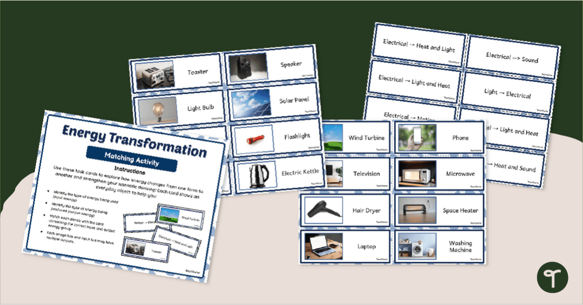 Explore how energy is used and transformed in everyday devices with our printable Energy Transformation Task Cards.