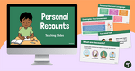 The presentation provides a step-by-step breakdown of the personal recount structure, supported by personal recount examples with annotations. Students will explore: