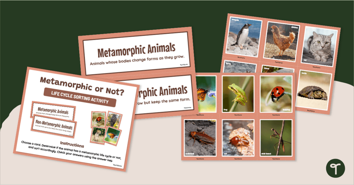 Identify animals with metamorphic and non-metamorphic life cycles with an engaging Life Cycle Sorting Activity.