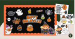 - “Happy Halloween” Banner – Hang the banner across your bulletin board, door, or whiteboard to instantly set the theme and spruce it up with other elements.