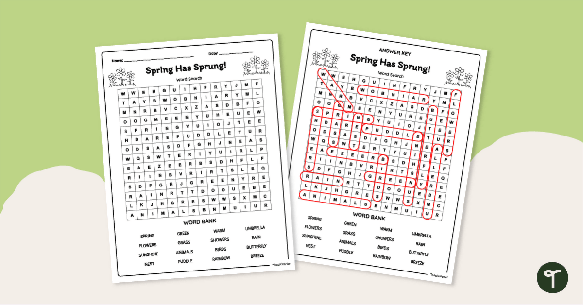 This printable proves that spring word searches make spelling fun! Featuring a curated list of seasonally themed vocabulary words—think sunshine, rainbow, puddle, and more—this puzzle challenges students to find hidden words horizontally, vertically, and diagonally.