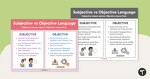 - Lesson Launchpad – Use the poster as a stimulus for a lesson about the differences between subjective and objective language. Review the key features on the poster, then have students brainstorm examples of each type of language.